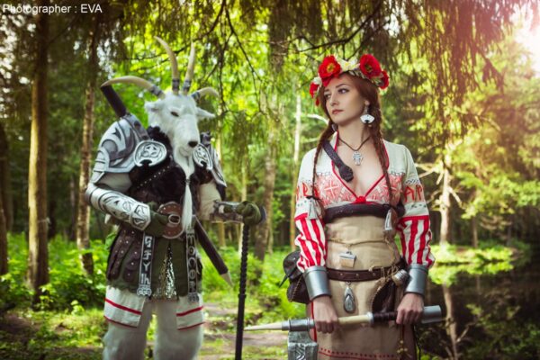 Лес, свет сквозь кроны, сталь и традиционные узоры — сказка, в которой нежность и сила идут рядом. На фото Алёнушка и Иванушка, но в неожиданном, более суровом прочтении. Больше сказочных перевоплощений — в #косплейнадзор! ❤️🔥