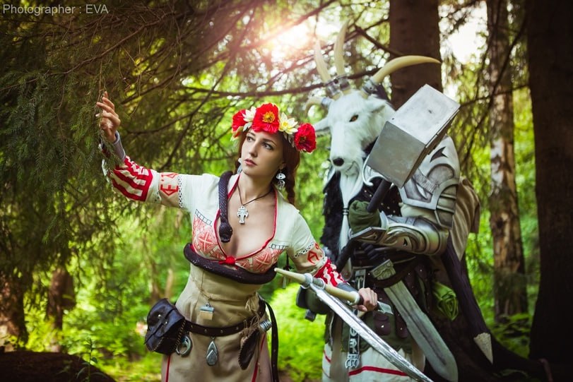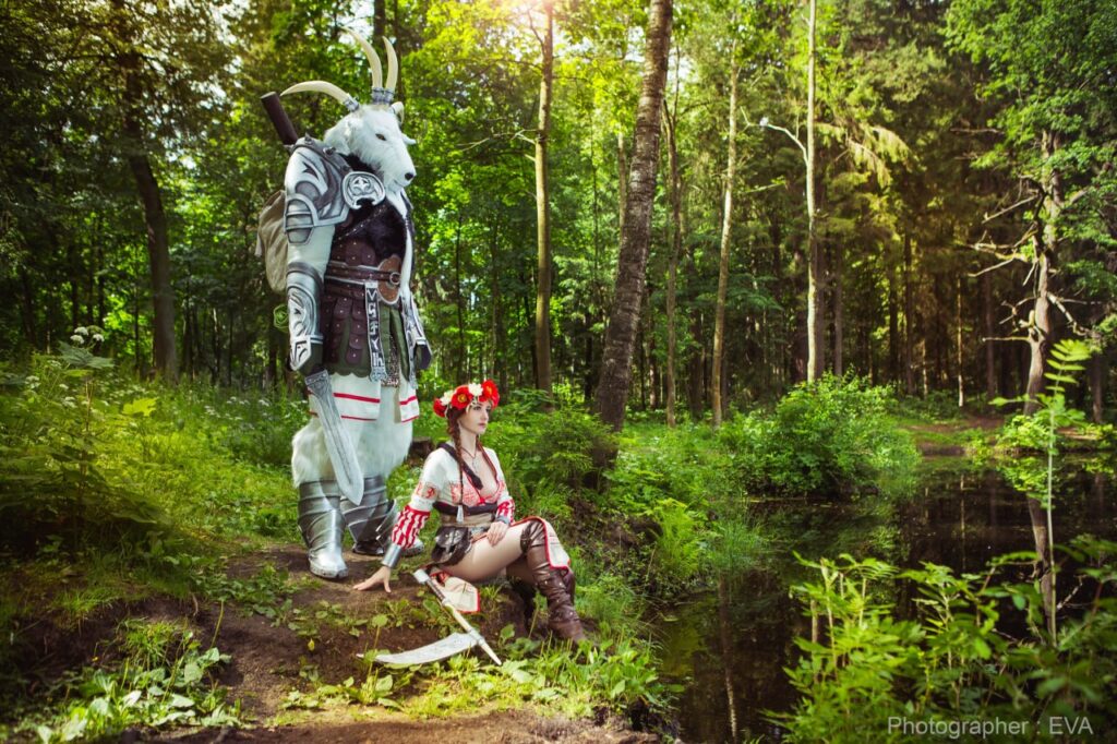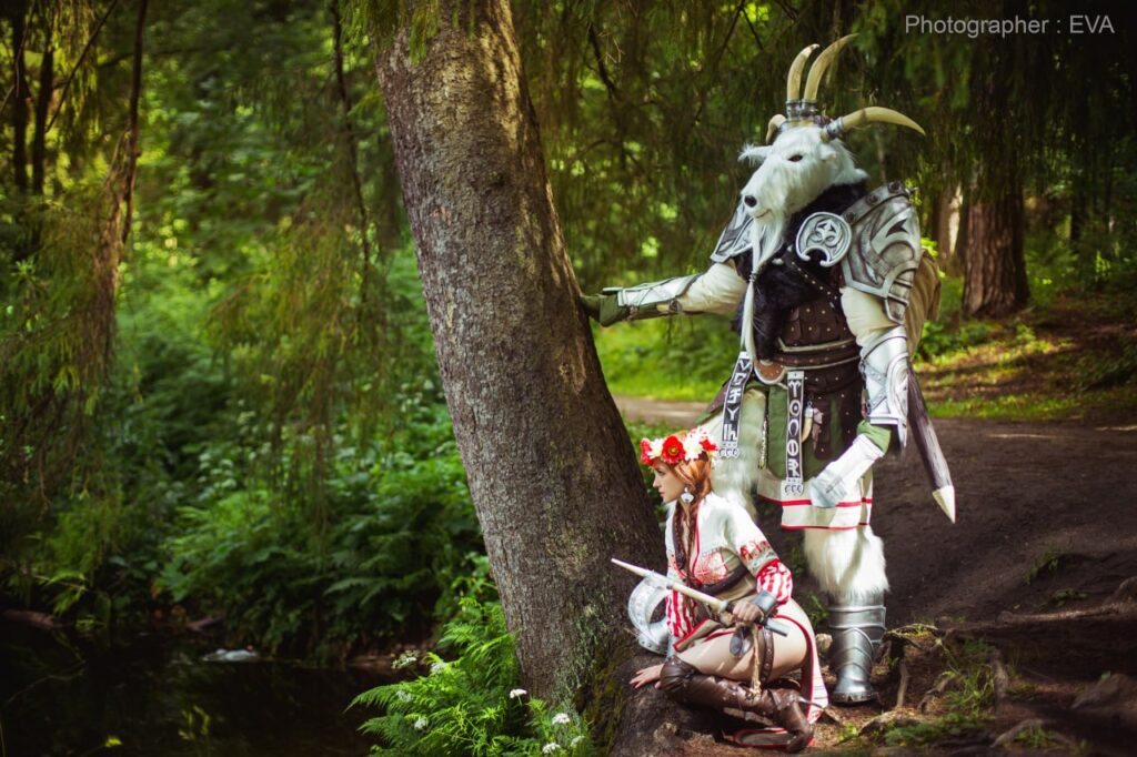 Лес, свет сквозь кроны, сталь и традиционные узоры — сказка, в которой нежность и сила идут рядом. На фото Алёнушка и Иванушка, но в неожиданном, более суровом прочтении.